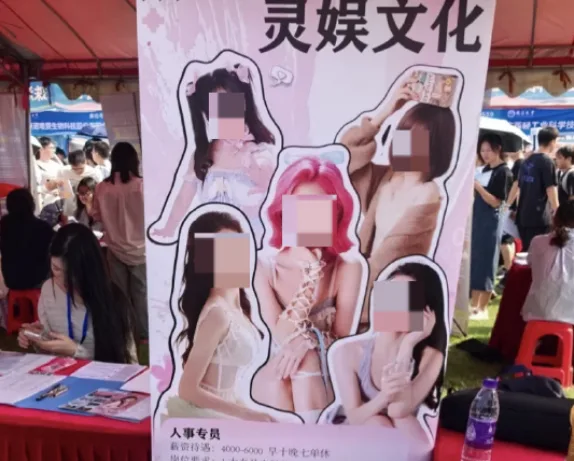 唐人日报10月23日讯:近日,在南昌大学秋季招聘活动中,一家企业的招聘海报因内容低俗、封面露骨而引发舆论哗然。海报中,几名穿着暴露的女性模特占据主要画面,配色夸张、姿态挑逗,整体风格更像商业广告而非校园招聘宣传,引发现场学生与网友强烈反感。
