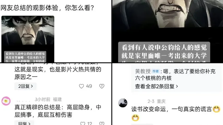 唐人日报2月7日讯:近日,一网友分享电影《哪吒2》的观后感,引发广泛讨论。他提到,申公豹在片中被塑造成“家里唯一的大学生”,但最终被社会的残酷现实所击碎。他感慨道,“当官的资产九开始,而老百姓一万年也赚不到九美元”,表达了对社会阶层不公的深刻反思。