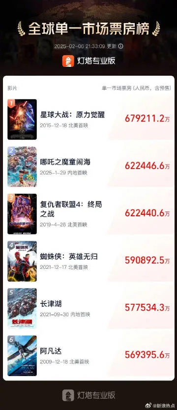 唐人日报2月7日讯:近日,国产动画电影《哪吒之魔童闹海》内地票房(含预售)突破62.2441亿元人民币,超越《复仇者联盟4:终局之战》在北美的票房成绩,成功跻身全球影史单一市场票房前二。
