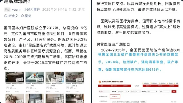一年超500家倒闭!莆田亿元项目破产拍卖,民营医疗机构陷“关停潮”