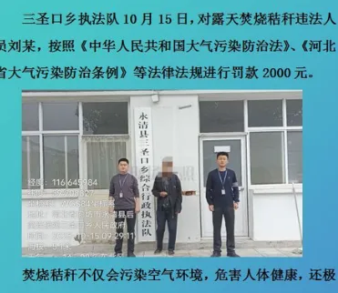 唐人日报10月17日讯:河北省廊坊市永清县三圣口乡,一位年近七旬的农民因被指“露天焚烧秸秆”被执法队处以2000元罚款。这笔钱几乎是老人一年辛勤劳作的全部收入。事件曝光后引发舆论哗然,网友痛批:“治理污染不能变成惩罚穷人的运动。”