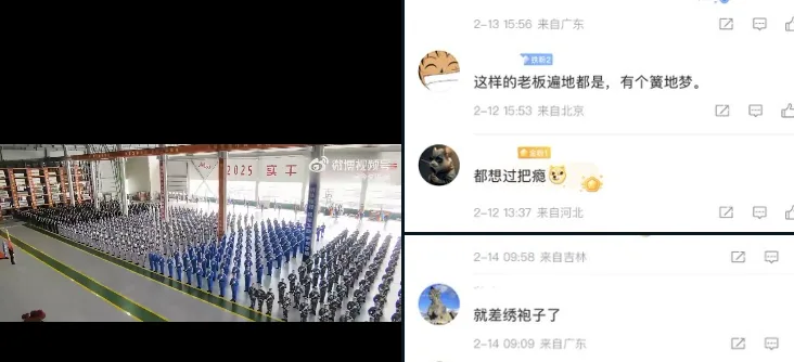 另有网友调侃道:“这是要造反吗?”该视频因过于严苛的训练方式和形式化的氛围,引发了关于企业文化和员工管理方式的争议。有网友认为,这种“军训式”管理过于生硬,不符合现代企业的需求。