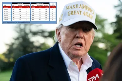 此前,多份调查显示,特朗普上任100天内的民意支持度创下自二战以来总统同期最低水平,其中《华盛顿邮报》/ABC调查显示其支持率仅为39%。面对下滑的数据,特朗普坚称自己最终将取得“大获全胜”。