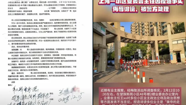 唐人日报2月21日讯:近日,上海望族新苑小区业委会主任在与业主的沟通中,指责部分业主为“美帝的走狗”和“台独分子”,并指责他们分裂国家。此言论引发广泛关注和不满。事后,当地派出所介入调查并调解,要求业委会主任作出道歉。