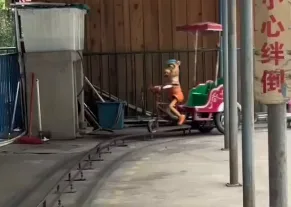 唐人日报6月3日讯:一段拍摄于上海动物园的视频在网络上引发热议。视频中,一台外形酷似长颈鹿的游乐设施因颈部损坏被缠上多圈胶带,依然坚守“岗位”继续运行。这一幕引发网友强烈共鸣,评论区感慨不断,视频获得数十万点赞。