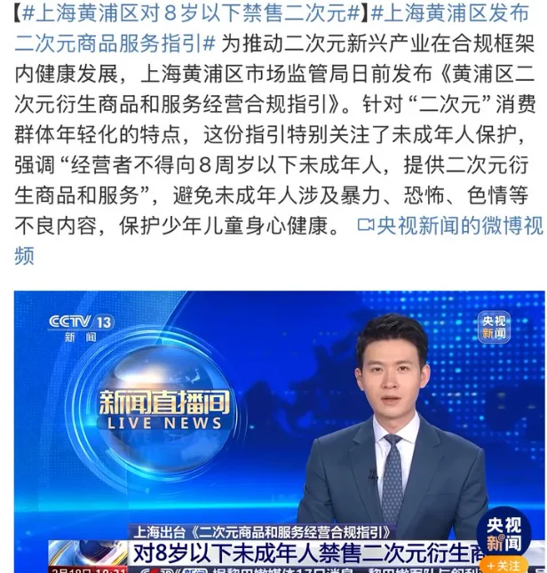 唐人日报3月19日讯:近日,上海市黄浦区市场监督管理局发布了一项重要指引,明确规定经营者不得向8周岁以下未成年人提供二次元衍生商品和服务。这一政策旨在防止未成年人接触包含暴力、恐怖、色情等不良内容,以保护少年儿童的身心健康。