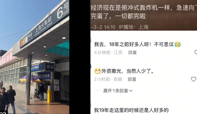 唐人日报3月7日讯:近日,上海火车站南广场地下通道内大量商铺关门转让的情况引发了社会关注。一段网络视频显示,这一区域曾经繁华的商业街现在门可罗雀,据拍摄者描述,目前约有70%的店铺已经停业。
