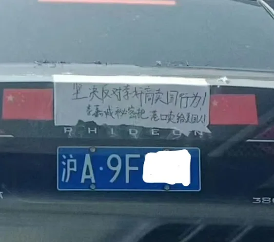 唐人日报3月26日讯:近日,上海街头出现一辆引人注目的私家轿车,车身贴满纸条,上面写着“坚决反对李奸商卖国行为!李嘉诚秘密把港口卖给美国人!”的醒目标语,引发路人围观和网友热议。