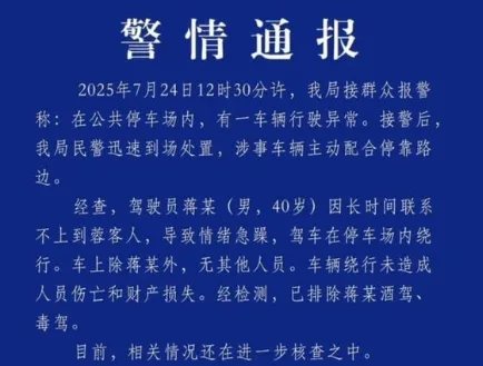 唐人日报7月25日讯:四川公安就“比亚迪机场绕行事件”发布警情通报,澄清此前网传“车辆故障”说法。经调查,该事件并非机械故障所致,而是驾驶员因情绪失控故意为之。
