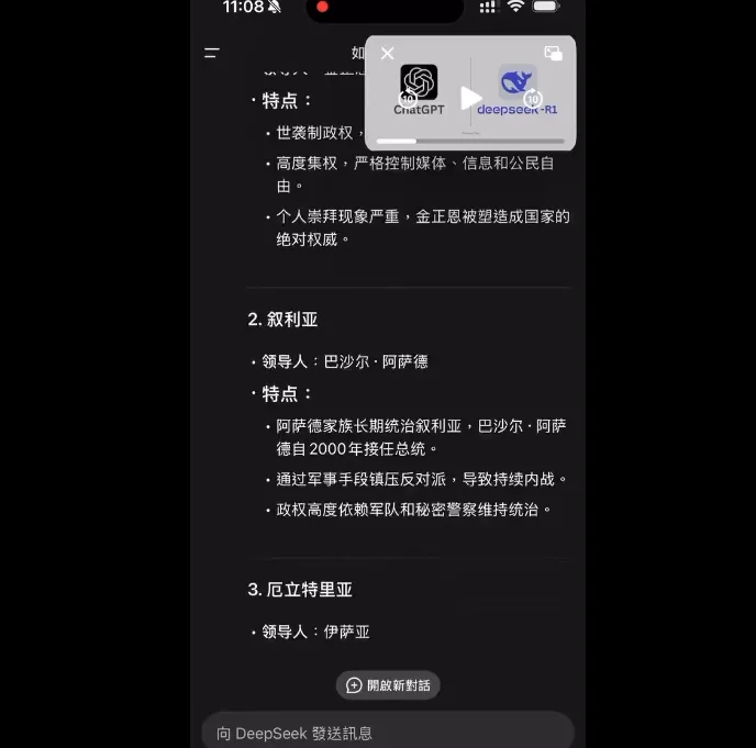 “世界上有独裁者吗?”Deepseek回答中断引热议