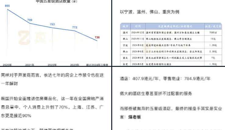唐人日报3月20日讯:近日,中国五星级酒店行业面临前所未有的挑战。根据文化和旅游部的数据显示,从2020年的850家降至2024年第三季度的736家,短短五年时间内,中国五星级酒店数量减少了114家。这一现象的主要原因,与国内房地产市场的降温密切相关,过去五星级酒店的繁荣很大程度上得益于房地产业的推动。