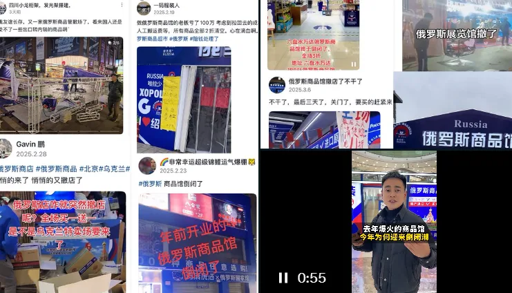 唐人日报3月15日讯:近日,全国多地传出“俄罗斯商品馆”倒闭的消息,曾一度如雨后春笋般在各大城市迅速扩张的这一商业模式现面临严峻挑战。不少店铺已开始挂出“清仓亏本甩卖,全场三折”的横幅,试图清理存货。