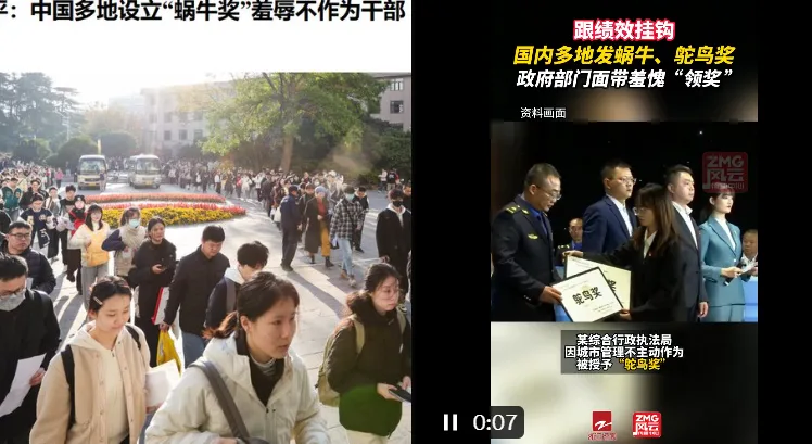广东省某城区甚至建立了数据库,追踪“躺平”的官员,并公开展示处理结果。相关官员穿着西装,面无表情地接过证书,体现出官方对懈怠官员的强烈反制态度。