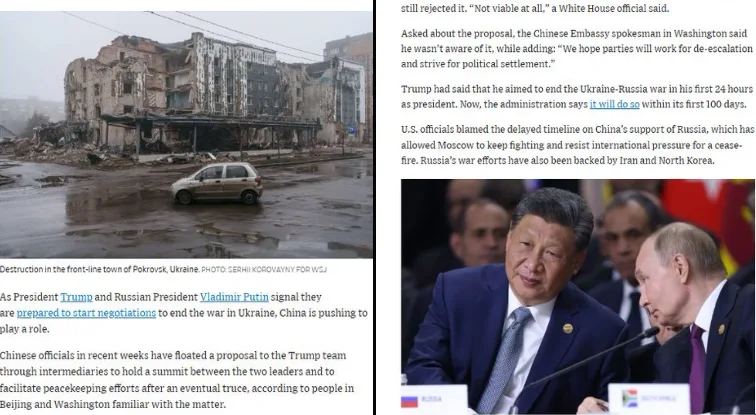 唐人日报2月14日讯:近日,中国通过中间人向特朗普团队提出建议,主张举行美俄领导人峰会,旨在推动俄乌冲突停火,并在最终停火后推动维和努力。中国提议将自己作为“担保人”,向乌克兰地区派遣维和部队。