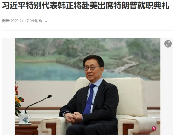唐人日报1月18日讯:近日,中国宣布国家副主席韩正将作为特别代表赴美出席特朗普的总统就职典礼,此举被视为减少中美摩擦的积极信号。