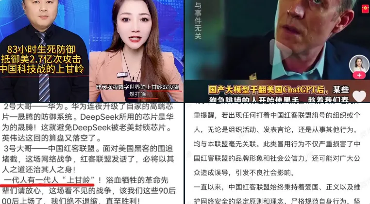 唐人日报2月7日讯:近日,社交媒体上流传着“美国眼红DeepSeek所取得成就,对其进行网络攻击,中国红客联盟等大佬集体出动,抵御美国攻击,打响了中国科技战的上甘岭”等内容,引发广泛关注。
