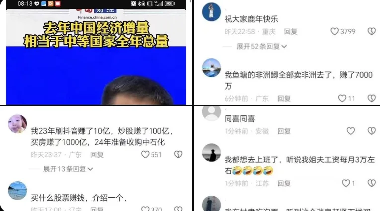 这些评论反映出公众对经济增长数据与实际生活差距的质疑,尤其是在民众普遍感受到经济压力和生活困难的背景下,数据的发布引发了更多的社会关注和讨论。