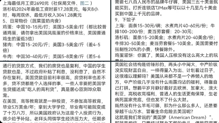 唐人日报1月27日讯:近日,大批“TikTok难民”涌入小红书,掀起中美网友之间的对账潮。陈平在其中直言,认为在中国月薪3000元比美国月薪5000美元生活得更好。对此,一位财经博主从医疗、教育等多个方面做出全面对比,反驳陈平的观点,指出中美生活成本与社会保障的巨大差异。然而,该博主的账号被平台禁言,相关的对账表也随之被删除。