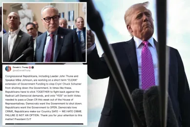 特朗普点名参议院多数党领袖约翰·图恩和众议院议长迈克·约翰逊,称他们正全力推动该临时法案。“这是阻止哭泣的查克·舒默(Cryin’ Chuck Schumer)关闭政府的唯一办法。在这样的时刻,共和党必须保持团结,在必要的两票上投下‘赞成’票。”他在社交媒体上写道。
