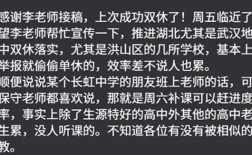 “举报才双休,不举报就单休?”洪山区高中生呼吁破除无效内卷