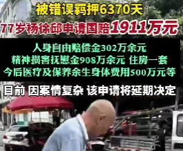唐人日报8月25日讯:近日,云南大理发生的一起冤案赔偿申请引发社会强烈关注。因被错误羁押长达 6370天(约17年零5个月),大理男子杨徐邱向相关部门正式提出国家赔偿申请,金额高达 1911万元。