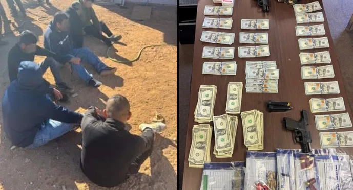 唐人日报2月5日讯:美国边境巡逻人员在亚利桑那州Pisinemo地区展开突袭行动,成功逮捕1名美国公民和6名非法移民,并缴获枪支、大麻及现金。