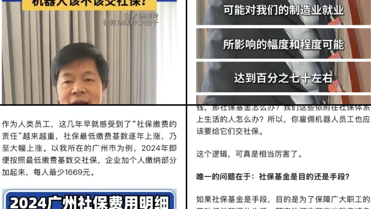 郑功成指出,传统上,企业雇佣人类员工需要为其缴纳社保,以保障员工的基本生活和医疗保障。然而,随着科技的发展,如果大量人类工作被机器人取代,原本由人类员工缴纳的社保将会大量减少。这将对依赖社保体系的人群产生重大影响。媒体人项栋梁引述郑功成的观点表示,这不仅是一个企业成本问题,更是一个社会责任问题。