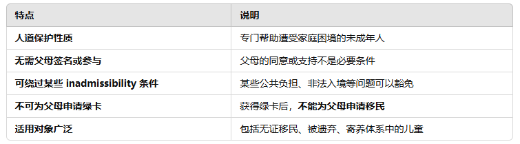 特殊未成年移民(Special Immigrant Juvenile, 简称 SIJ 或 SIJS),是一种美国移民身份保护途径,专门为那些在美国境内的未成年儿童,因受到虐待、遗弃或忽视,并且无法或不适宜返回原籍国,提供合法身份甚至绿卡申请机会的制度。