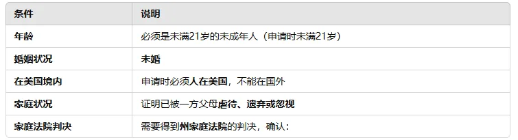SIJ 是一种人道主义移民保护,目的是帮助那些没有父母照顾、遭受过家庭虐待、弃养或忽视的未成年人。