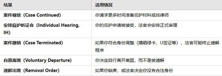 如果你申请庇护,法官会安排你的**庇护听证会(Individual Hearing, IH)**的时间。