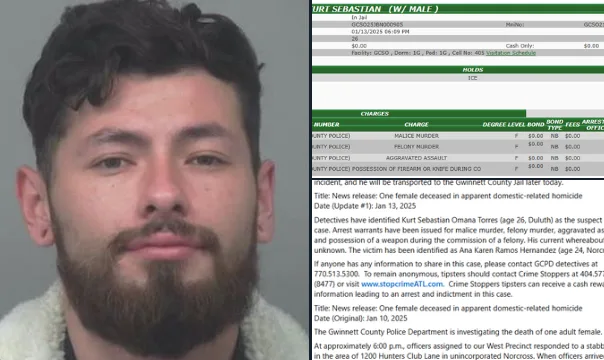 唐人日报4月27日讯:佐治亚州格威内特县执法部门通报,非法移民库尔特·塞巴斯蒂安·奥马纳·托雷斯(Kurt Sebastian Omana-Torres)因涉嫌谋杀安娜·卡伦·拉莫斯·埃尔南德斯(Ana Karen Ramos Hernandez)于今年1月被逮捕,目前已由移民与海关执法局(ICE)拘留。