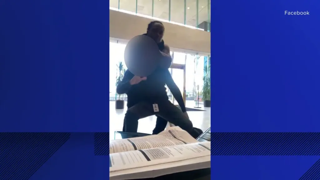 他在DCS办公大厅内对工作人员实施攻击,先是用拳头击打,随后从背后勒住受害者近三分钟,导致对方因窒息而失去知觉。