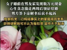 偷未婚夫现金后领证结婚,检察机关不起诉!网友:这操作合法吗?