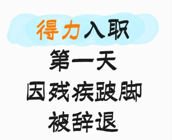 “我从小腿有轻微残疾,但不影响工作。”这位网友写道,“我连三轮面试都通过了,所有能力测评也没问题。结果入职那天刚走进公司大门,人事看到我走路有点跛,就让我‘回去等通知’,两小时后直接电话通知:公司决定不再录用。”