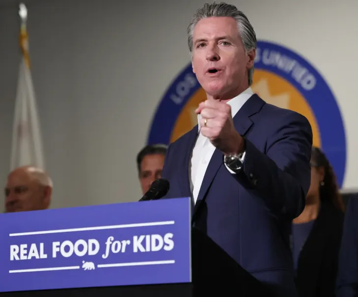 纽森在签署仪式上表示,加州不会等待华盛顿采取行动,而是要主动为下一代建立健康饮食标准。“我们过去带头去除学校中的有害色素,如今要更进一步,”他说,“我们希望每个加州学生都能吃上健康、美味、能帮助他们茁壮成长的餐食。”在他身旁,第一夫人詹妮弗·西贝尔·纽森和多位立法者共同见证了这一时刻。州政府此前已通过行政命令,要求公共卫生部研究限制超加工食品的健康风险,并于2023年签署法律,禁止学校使用特定人工色素。