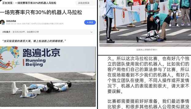 全球首场机器人半马完赛率仅30%!首场人形半马变“翻车现场”,网友笑疯