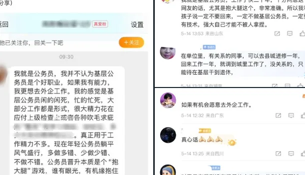 此番言论在网络上引起广泛共鸣和讨论。有人称其“说出了大实话”,也有人批评其“偏激片面”。然而,无论观点如何,体制内形式主义与晋升机制问题,再次被推上舆论风口,引发公众对公务员生态的重新思考。