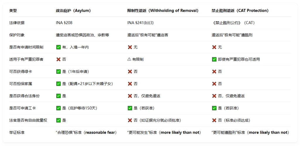 如果你 有犯罪记录或其他庇护障碍 → 最后一道防线是 CAT保护