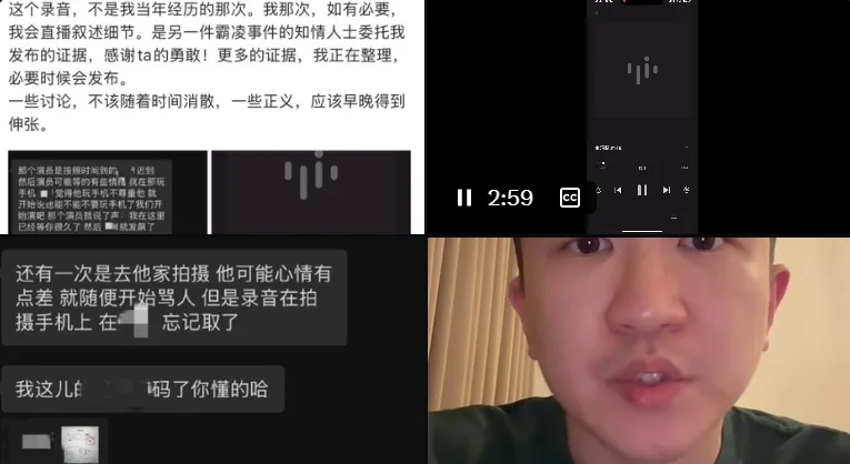 唐人日报2月2日讯:近日,演员刘大锁公开曝光了一段职场霸凌录音,指控男艺人(疑似张大大)存在严重的霸凌行为。录音中,该艺人不仅迟到两小时,还指责素人没有与其打招呼,并频繁使用脏话威胁他人,如“别活着离开这里”、“找到他家”、“给他封杀”等。刘大锁表示,自己在此期间承受了巨大的压力。