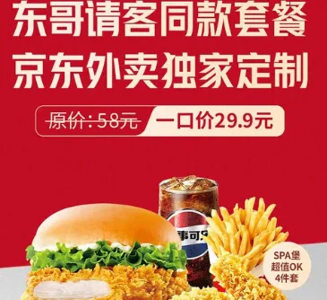 据京东方面介绍,自10月31日上午10时起,全国各地的京东外卖全职骑手可通过京东APP核销领取,由刘强东出资的“东哥请客”套餐。与此同时,平台还特别推出面向公众的同款福利活动:原价58元的肯德基套餐,将以29.9元的优惠价在京东外卖平台上线,普通用户也能“同步体验东哥同款”。