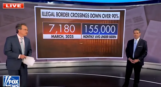 诺姆指出,2025年3月,边境巡逻队仅记录7,181起非法越境遭遇事件,而在乔·拜登总统任内,同类数据的月均值高达160,000人次,差距悬殊。她表示,这一对比反映出两届政府在边境管理上的根本差异。