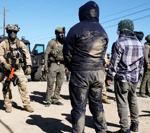 近几个月,社交媒体上屡次出现南加州的画面:身穿深绿色制服、持枪的ICE特工戴着头套,在街头给移民上铐押走。陌生车辆、蒙面执法人员、移民无声消失,这些场景让不少人直呼宛如“秘密警察”。抗议者批评,这种匿名执法削弱了问责,令社区陷入恐慌。纽森在签署仪式上表示:“这是一种耻辱,更是一种暴行。我们不能允许这样的场景在美国上演。”