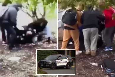 一旁的学生和女孩的男友奋力阻止,但仍无法制止袭击。