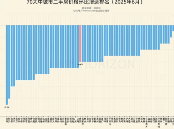 唐人日报7月17日讯:据TimeHorizon独立经济观察发布数据显示,2025年6月,全国一线城市房价下跌趋势加速,市场情绪持续低迷。其中,北京二手房环比下跌1.0%,在全国70个大中城市中跌幅排名第三,领衔一线城市的下调行情。