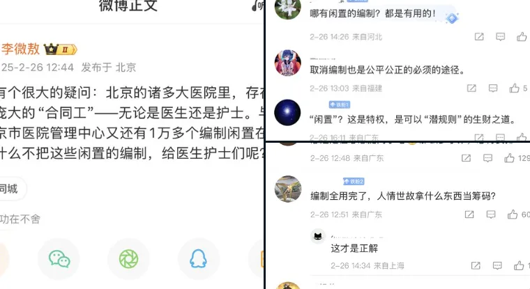 他认为,这种资源浪费不仅影响了医疗服务的质量,也加剧了医院人员流动性。此番言论引发了对北京医疗系统编制管理和人力资源配置效率的广泛讨论,呼吁相关部门采取措施解决这一问题。