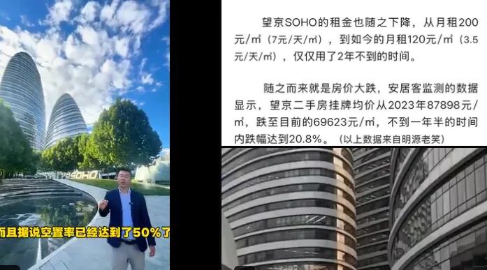 唐人日报3月30日讯:北京朝阳区的望京SOHO曾是互联网和创业公司的集聚地,其现代化的外观和优越的地理位置一度成为北京商业活动的标志。然而,随着房地产市场的下行和租金的大幅下降,这一地标性建筑的光环正在逐渐褪色。