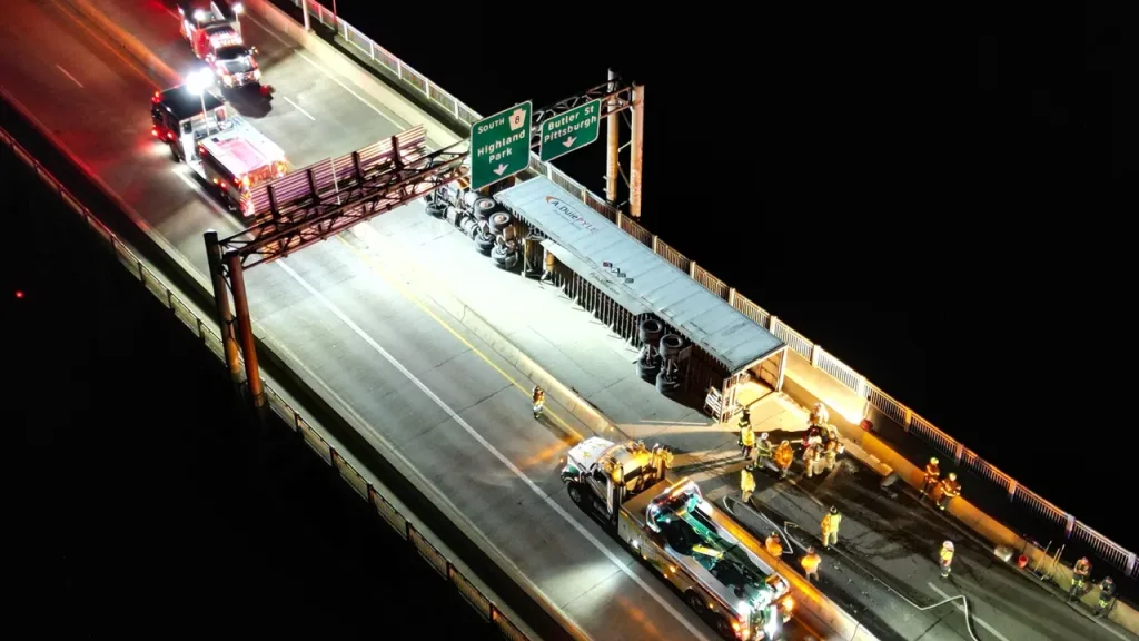 匹兹堡第62街大桥因拖挂车翻覆一度封闭 警方介入调查
