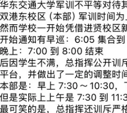 在舆论压力下,军训总指挥曾出面回应,称进贤校区军训时间已调整,与本部保持一致。然而,学生们提供的最新安排表显示,所谓“调整”并未真正做到同步。进贤校区的军训时间仍是上午7:30至11:30,下午3:30至6:00,虽然比此前稍有缩短,但训练时长依然远超本部,差距依旧明显。