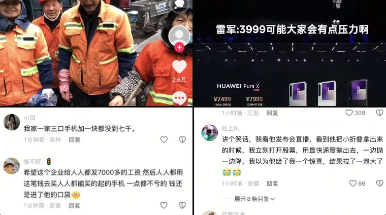 这一定价引发了广泛的讨论和质疑,许多网民纷纷表示失望。有人评论道:“我一家三口手机加起来都不到7000元,怎么会有‘人人买得起’的产品?”还有网友更为形象地指出:“农民要收多少斤麦子才能凑够7000元?”这番话语揭示了当前手机价格对部分群体的高昂负担,尤其是对于经济条件较为有限的普通家庭来说,7400元的价格显得格外沉重。