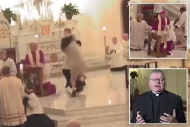 该事件发生在为期九天的“卢尔德治愈九日敬礼”(Lourdes Novena for Healing)仪式期间,现场直播画面显示,袭击者从第一排长椅跃起,快速冲向祭坛。盖恩斯神父见状起身,但仍被袭击者一拳击中面部。随后,他迅速将对方制服,教堂工作人员和信徒们也上前协助。